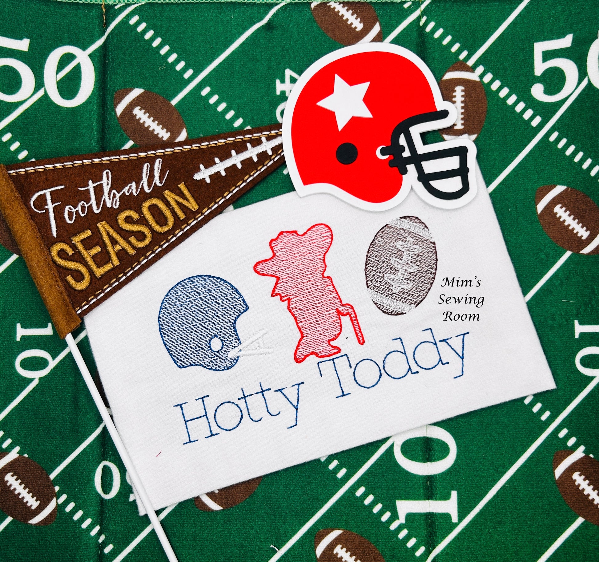 Font shown: Bean, can also be monogrammed with a name instead of Hotty Toddy.